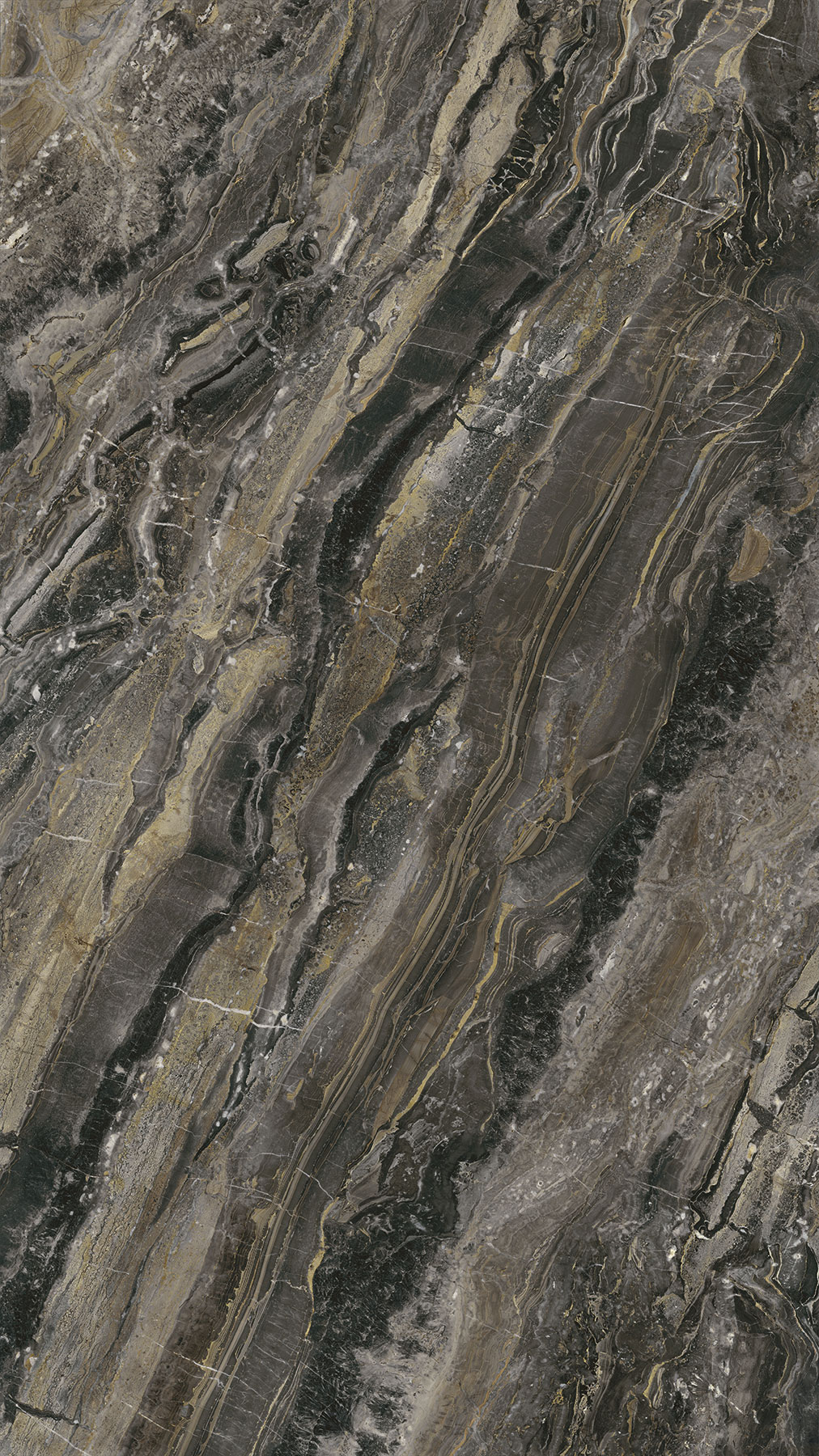 Zenith Storm reinterpreta l’intensità materica dell’Arabescato Orobico, uno dei marmi più iconici delle Alpi Orobie. La sua superficie in grès porcellanato nel formato unico 1840x3300m riproduce con straordinaria precisione la ricchezza cromatica e l’eleganza selvaggia della pietra naturale. Le venature ondulate nei toni dell’oro bruciato e dell’antracite scorrono come flussi minerali in movimento costante, creando una composizione visiva potente e scenografica, capace di conferire energia e profondità architettonica a ogni spazio.